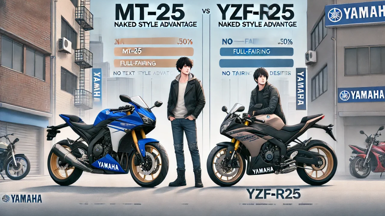 - MT-25はネイキッドスタイル、R25はフルカウル